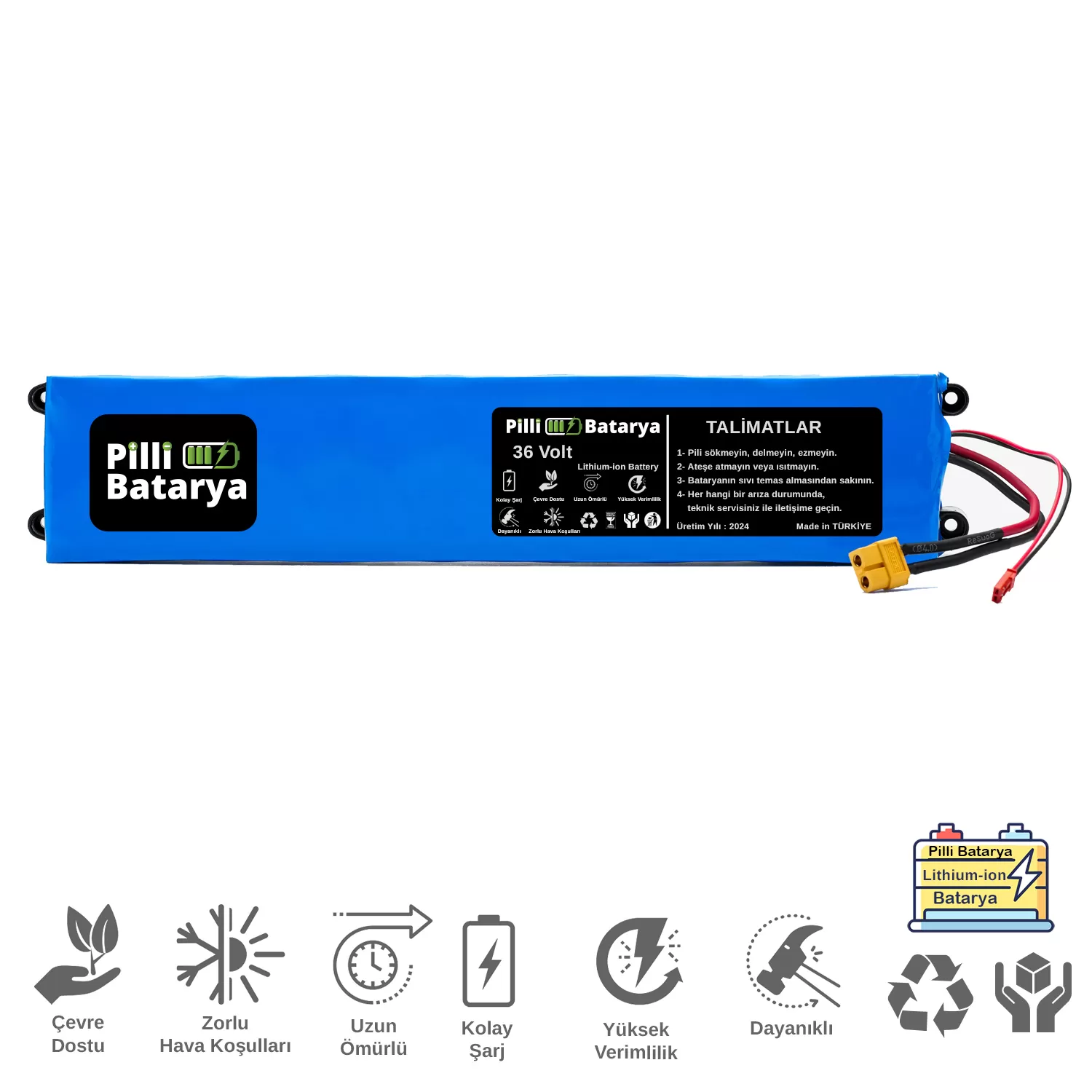 Yüksek Güvenlik Standartları: Batarya, aşırı ısınma, aşırı şarj ve kısa devre korumasına sahiptir. Güvenli bir sürüş sağlamak için özel olarak tasarlanmıştır.