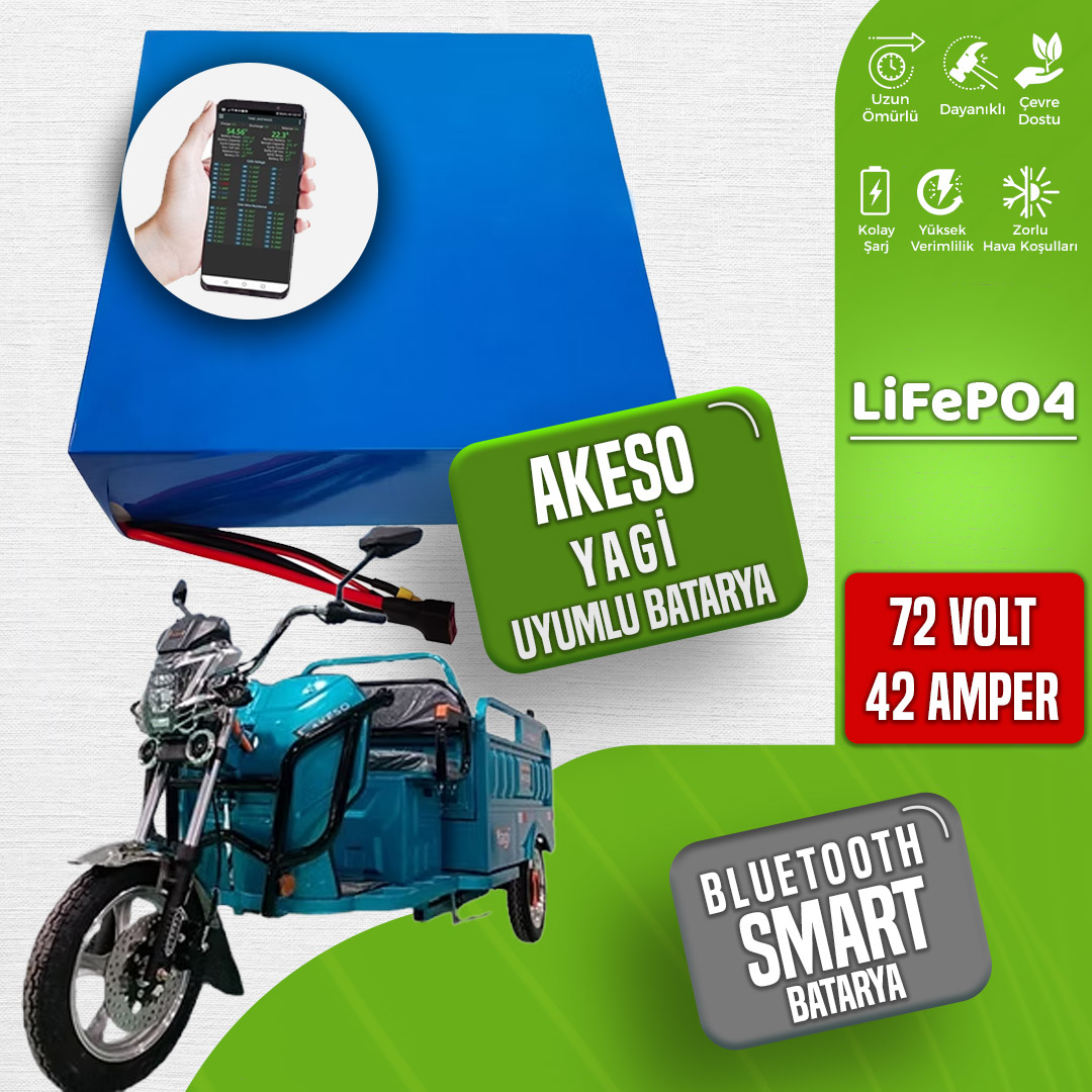 Akeso Yagi elektrikli moped için tasarlanan 72 Volt 42 Amper SMART (AKILLI) BLUETOOTH ÖZELLİKLİ LiFePO4 batarya, yüksek verimli ve dayanıklı yapısıyla öne çıkan bir güç kaynağıdır. Elektrikli araçlarda üstün performans sağlayan bu batarya, güvenli ve uzun ömürlü bir enerji depolama çözümü sunar. Modern LiFePO4 teknolojisiyle üretilen bu batarya, güvenlik, enerji yoğunluğu ve kullanım ömrü gibi alanlarda benzersiz avantajlar sunar.