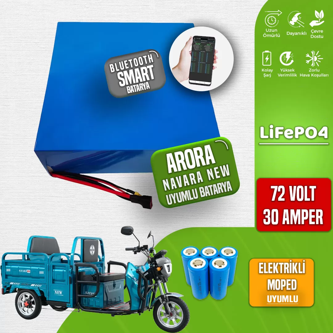 Arora Navara New elektrikli moped için tasarlanan 72 Volt 30 Amper SMART (AKILLI) BLUETOOTH ÖZELLİKLİ LiFePO4 batarya, yüksek verimli ve dayanıklı yapısıyla öne çıkan bir güç kaynağıdır. Elektrikli araçlarda üstün performans sağlayan bu batarya, güvenli ve uzun ömürlü bir enerji depolama çözümü sunar. Modern LiFePO4 teknolojisiyle üretilen bu batarya, güvenlik, enerji yoğunluğu ve kullanım ömrü gibi alanlarda benzersiz avantajlar sunar.