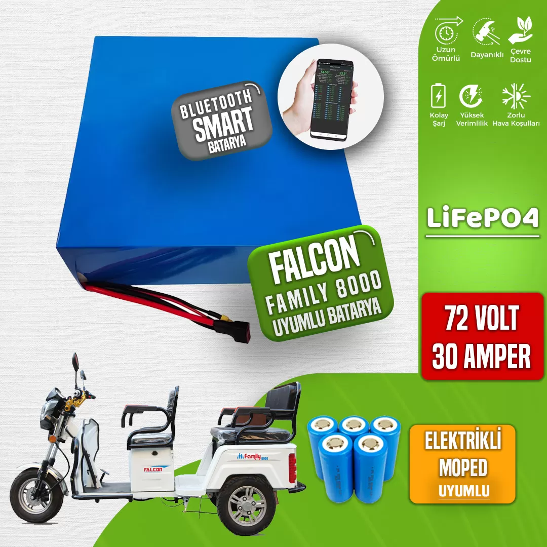 Falcon Family 8000 Moped 72 Volt 30 Amper Smart LiFePO4 Batarya