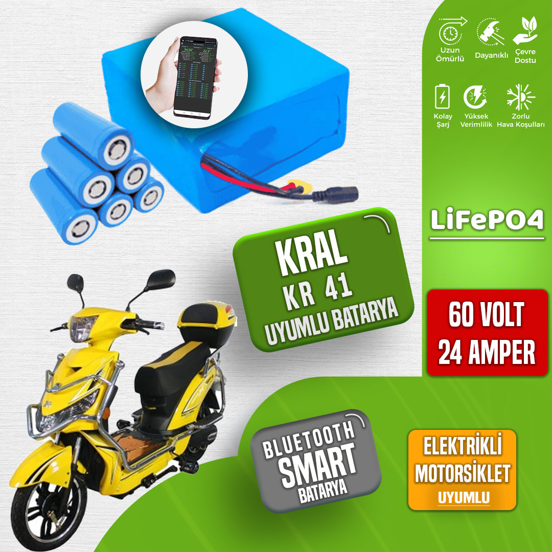Kral KR41 Elektrikli Motorlu Bisiklet 60 Volt 24 Amper Lifepo4 Pil Paketi, alanında uzman mühendislerimizin tasarımı ile üretilmiştir.
