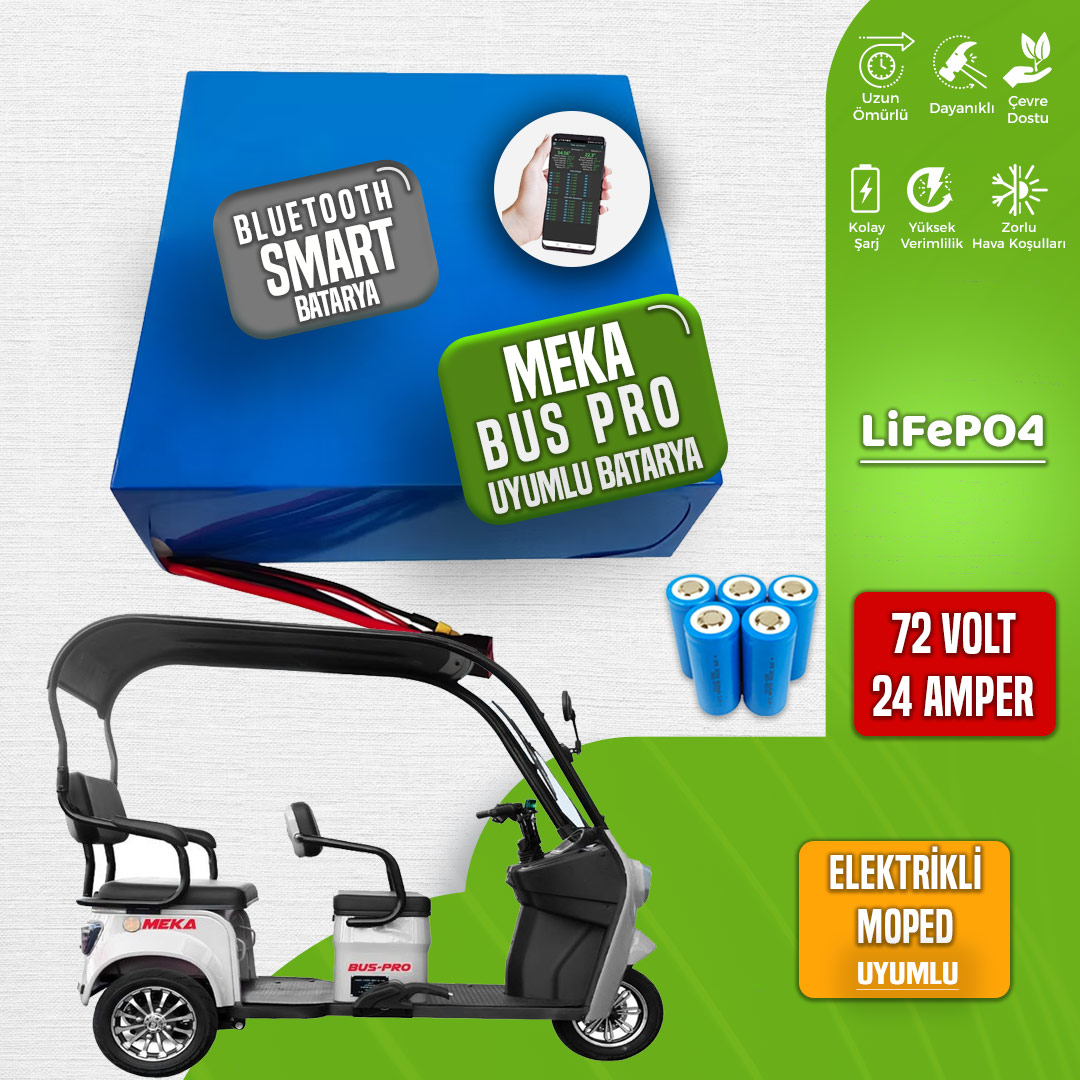 Meka Bus Pro elektrikli motosiklet için tasarlanan 72 Volt 24 Amper LiFePO4 Smart Batarya, yüksek verimli ve dayanıklı yapısıyla öne çıkan bir güç kaynağıdır. Elektrikli araçlarda üstün performans sağlayan bu batarya, güvenli ve uzun ömürlü bir enerji depolama çözümü sunar. Modern LiFePO4 teknolojisiyle üretilen bu batarya, güvenlik, enerji yoğunluğu ve kullanım ömrü gibi alanlarda benzersiz avantajlar sunar.