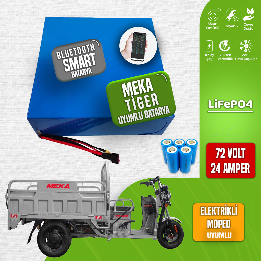 Meka Tiger elektrikli motosiklet için tasarlanan 72 Volt 24 Amper LiFePO4 Smart Batarya, yüksek verimli ve dayanıklı yapısıyla öne çıkan bir güç kaynağıdır. Elektrikli araçlarda üstün performans sağlayan bu batarya, güvenli ve uzun ömürlü bir enerji depolama çözümü sunar. Modern LiFePO4 teknolojisiyle üretilen bu batarya, güvenlik, enerji yoğunluğu ve kullanım ömrü gibi alanlarda benzersiz avantajlar sunar.