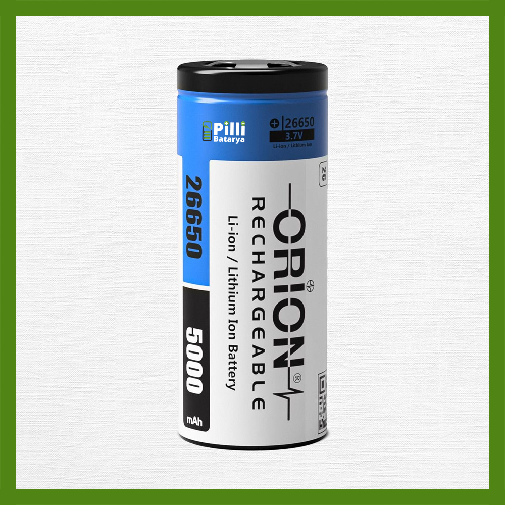 Anahtar Kelimeler: 26650 pil, 5000mah pil, 3.7v lityum pil, orion 26650, dalış feneri pili, şarj edilebilir 26650, yüksek kapasiteli pil, 10a deşarj pil