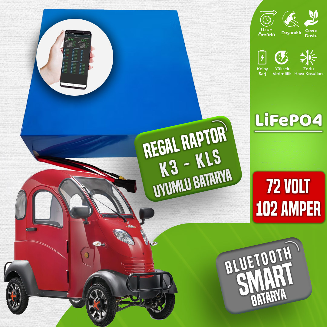 Regal Raptor K3-KLS Elektrikli Araba 72 Volt 102 Amper Smart LiFePO4 Batarya