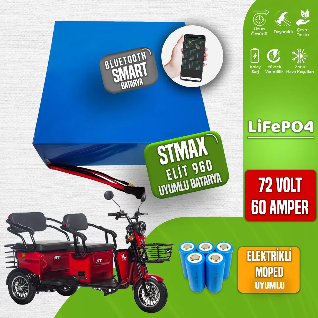 Stmax Elit 960 Moped 72 Volt 60 Amper Smart LiFePO4 Batarya