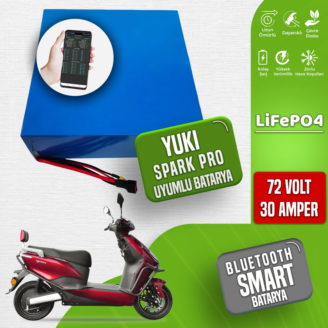 Yuki Spark PRO elektrikli motosiklet için tasarlanan 72 Volt 30 Amper LiFePO4 batarya, yüksek verimli ve dayanıklı yapısıyla öne çıkan bir güç kaynağıdır. Elektrikli araçlarda üstün performans sağlayan bu batarya, güvenli ve uzun ömürlü bir enerji depolama çözümü sunar. Modern LiFePO4 teknolojisiyle üretilen bu batarya, güvenlik, enerji yoğunluğu ve kullanım ömrü gibi alanlarda benzersiz avantajlar sunar.